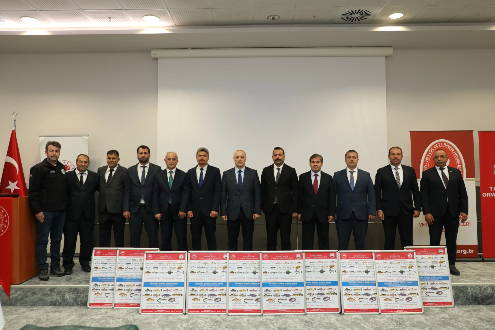 İlgili toplantıda, 1380 sayılı Su Ürünleri Kanununun 23. Maddesinin (b) bendinde yer verilen hükümler detaylı olarak değerlendirildi. 6/1 No’lu Ticari Amaçlı Su Ürünleri Avcılığının Düzenlenmesi Hakkında Tebliğ kapsamında tasarlanan “balıklarda boy, zaman ve tür yasaklarını” gösterir çerçeveli balık afişleri tanıtıldı. Kanunun 36. maddesinde düzenlenen “İdari Yaptırımların” amatör ve ticari amaçlı balıkçılık yapan, perakende balık satışı yapan kişilerin ve tüketici konumundaki tüm vatandaşların bilgilendirilmesi amacıyla hazırlanan çerçeveli balık afiş kartelaları İl ve İlçe Tarım ve Orman Müdürlüğü hizmet binalarında ilan edilmek üzere İlçe Tarım ve Orman Müdürlerine teslim edildi.