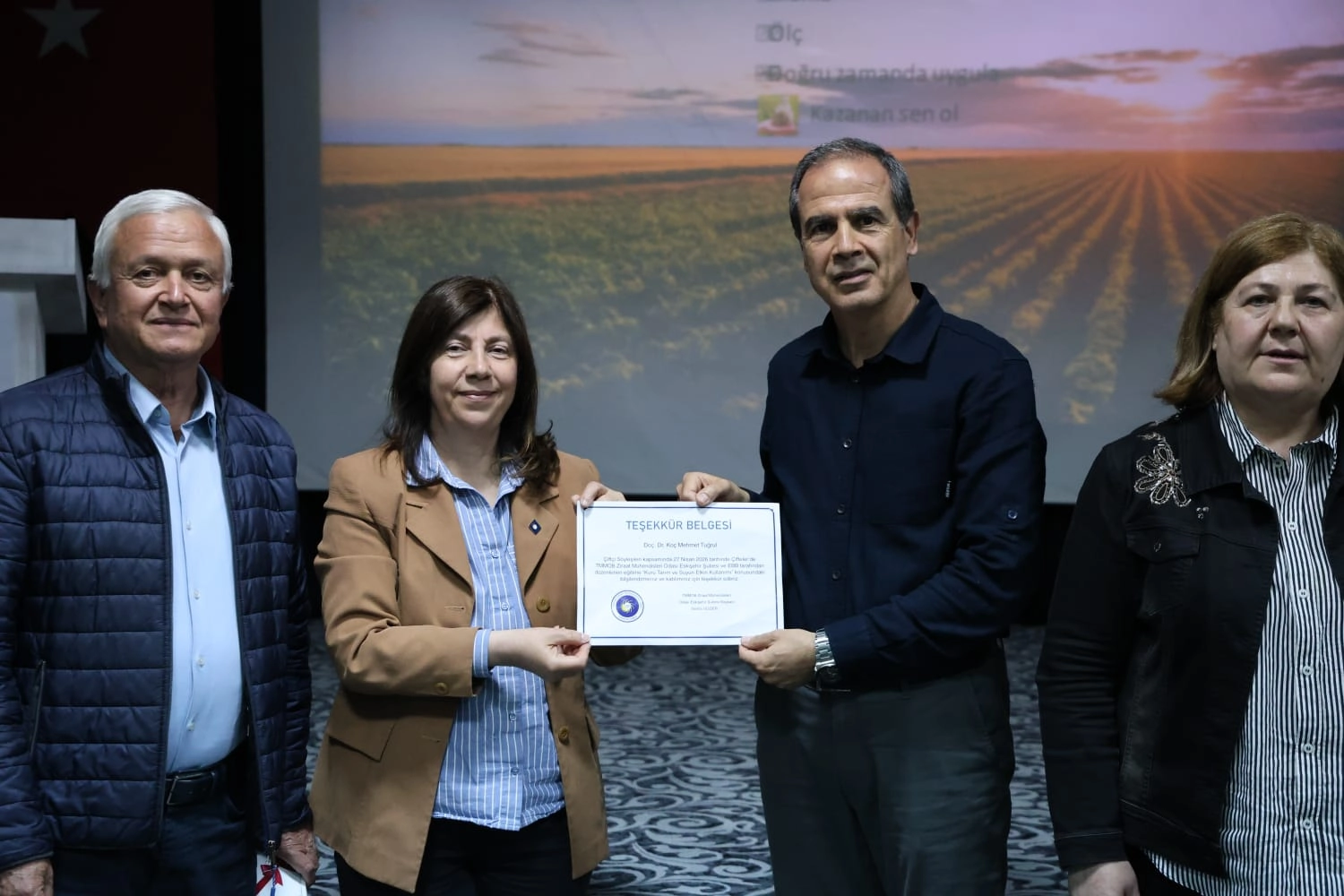 Söyleşide Doç. Dr. Koç Mehmet Tuğrul kuru tarım teknikleri, su kaynaklarının tasarruflu kullanımı ve sürdürülebilir üretim yöntemleri üzerine kapsamlı bir sunum gerçekleştirdi. Eğitimin en dikkat çekici anları ise uygulamalı bölümde yaşandı. Çiftçilerin beraberinde getirdiği toprak numuneleri uzmanlar tarafından anlık olarak analiz edilerek, analiz sonuçları üreticilerle paylaşıldı.