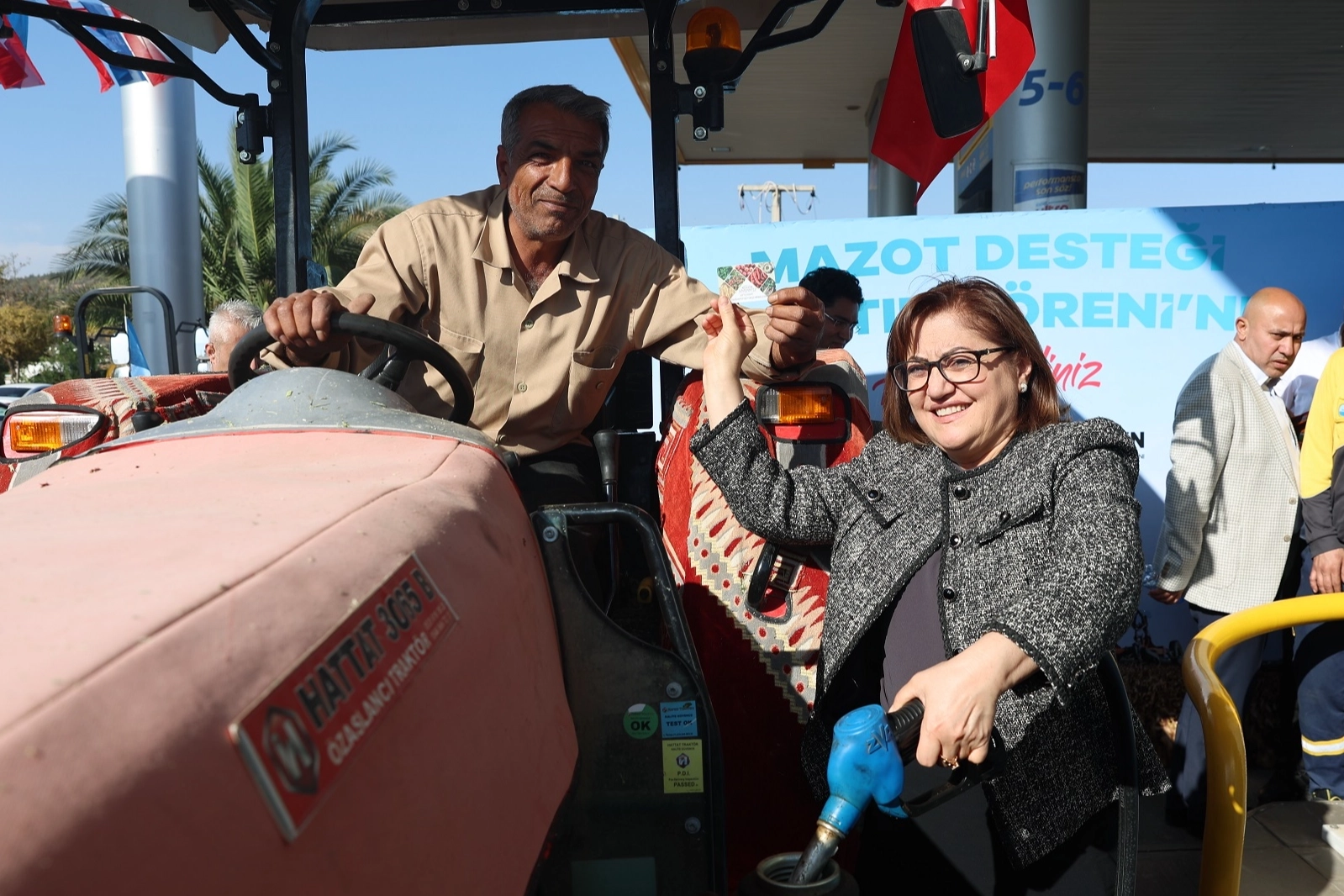 Konuşmaların sonrasında Başkan Fatma Şahin ve protokol üyeleri, akaryakıt istasyonunda üreticilerin iş araçlarına akaryakıt dolumu yaparak, günün sonunda hatıra fotoğrafı çektirdi.