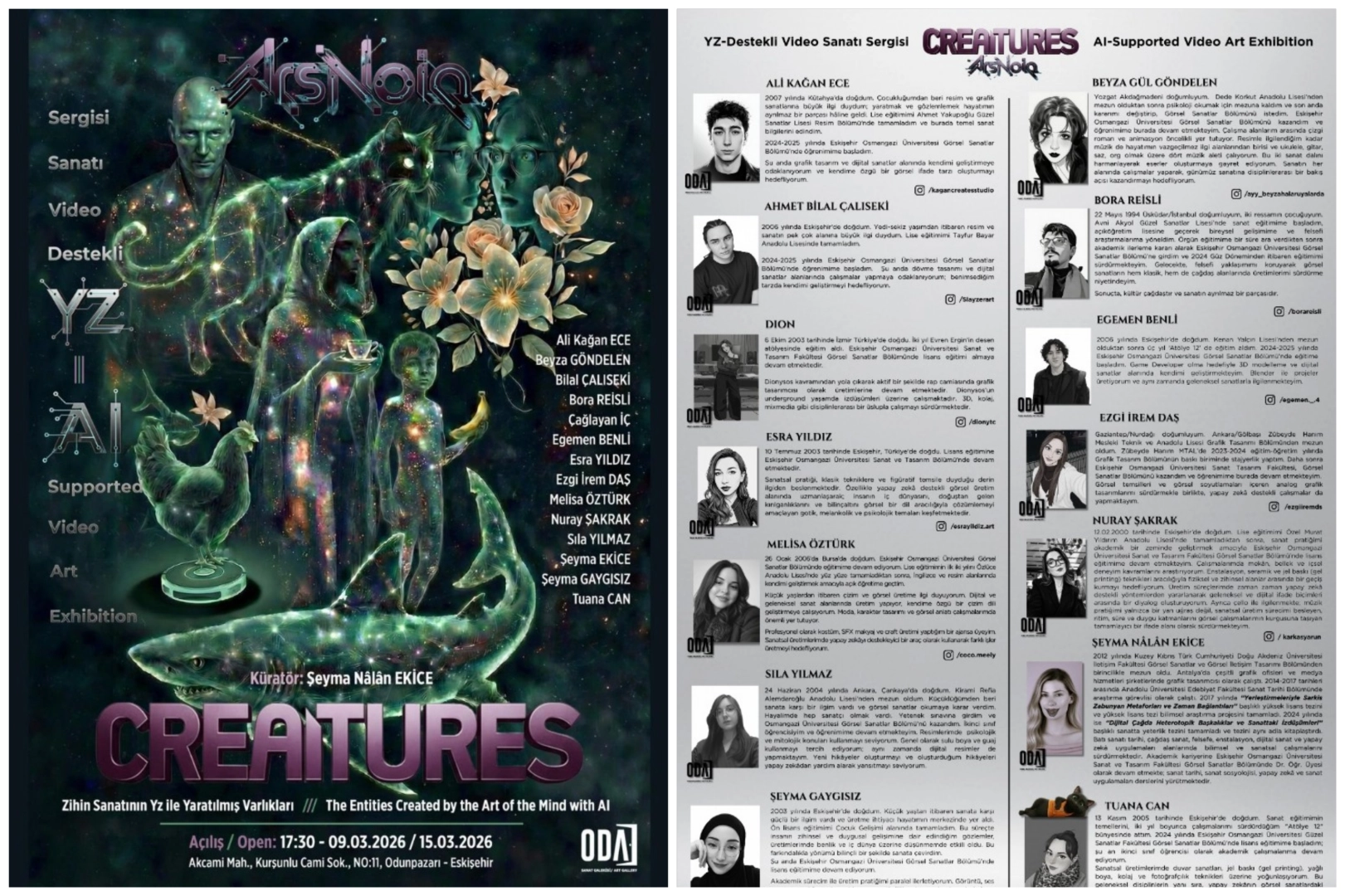 Sanatın geleneksel sınırları, yapay zekanın sonsuz olasılıklarıyla Eskişehir’de birleşiyor. ESOGÜ Sanat ve Tasarım Fakültesi Görsel Sanatlar Bölümü Dr. Öğr. Üyesi Şeyma Nâlân Ekice ve öğrencilerinin oluşturduğu “ArsNoia” topluluğu, merakla beklenen karma sergileri “CreAItures” ile sanatseverlerle buluşmaya hazırlanıyor.