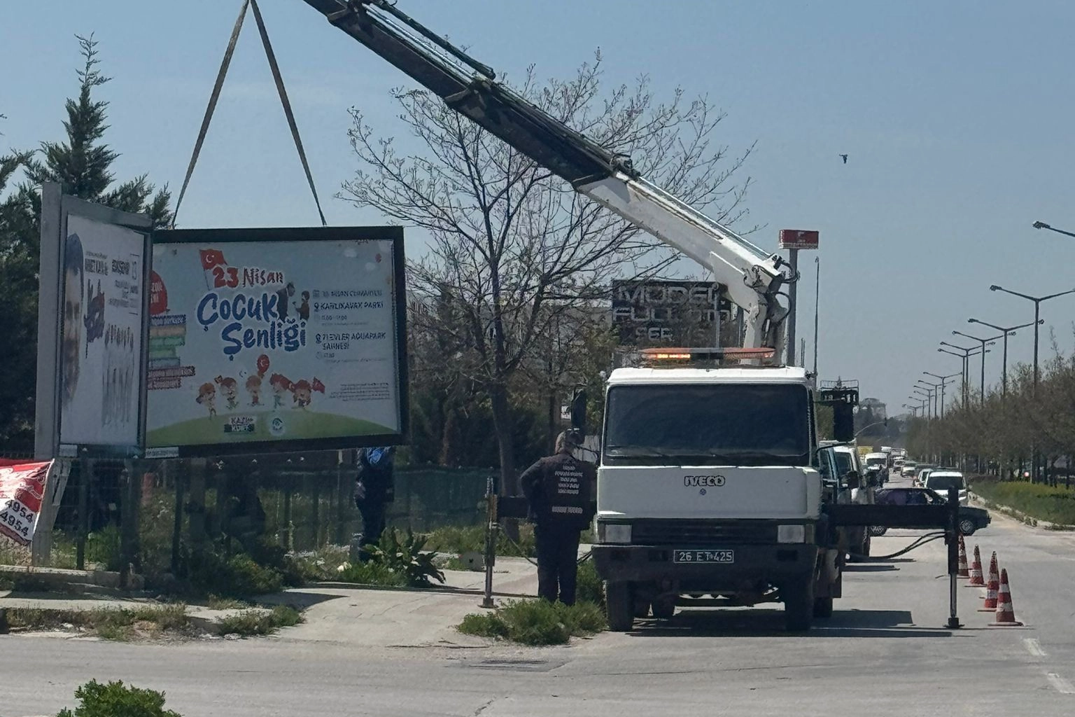 Eskişehir'de son günlerde Teksan bölgesine dikilen ve ardından sökülmeye başlanan billboardlar, siyasetin gündemine oturdu. AK Parti Tepebaşı İlçe Başkanı Serhat Tunç, konuyla ilgili sert bir açıklama yaparak Eskişehir Büyükşehir Belediyesi’ne 5 kritik soru yöneltti.