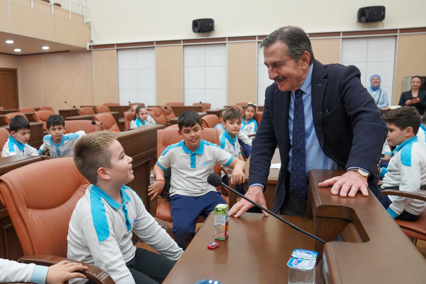 Hayat Bilgisi Dersi kapsamında “Yönetim Birimleri” konusunu pekiştirmek ve çocukların belediye yönetimini yakından tanımalarını sağlamak amacıyla Başkan Ataç’ı ziyaret eden çocuklar Meclis Salonunda ağırlandı. Başkan Ataç, öğrencilerle samimi bir sohbet gerçekleştirdi. Küçük öğrenciler, belediye başkanının görevleri ve belediye çalışmaları hakkında sorular yöneltti.