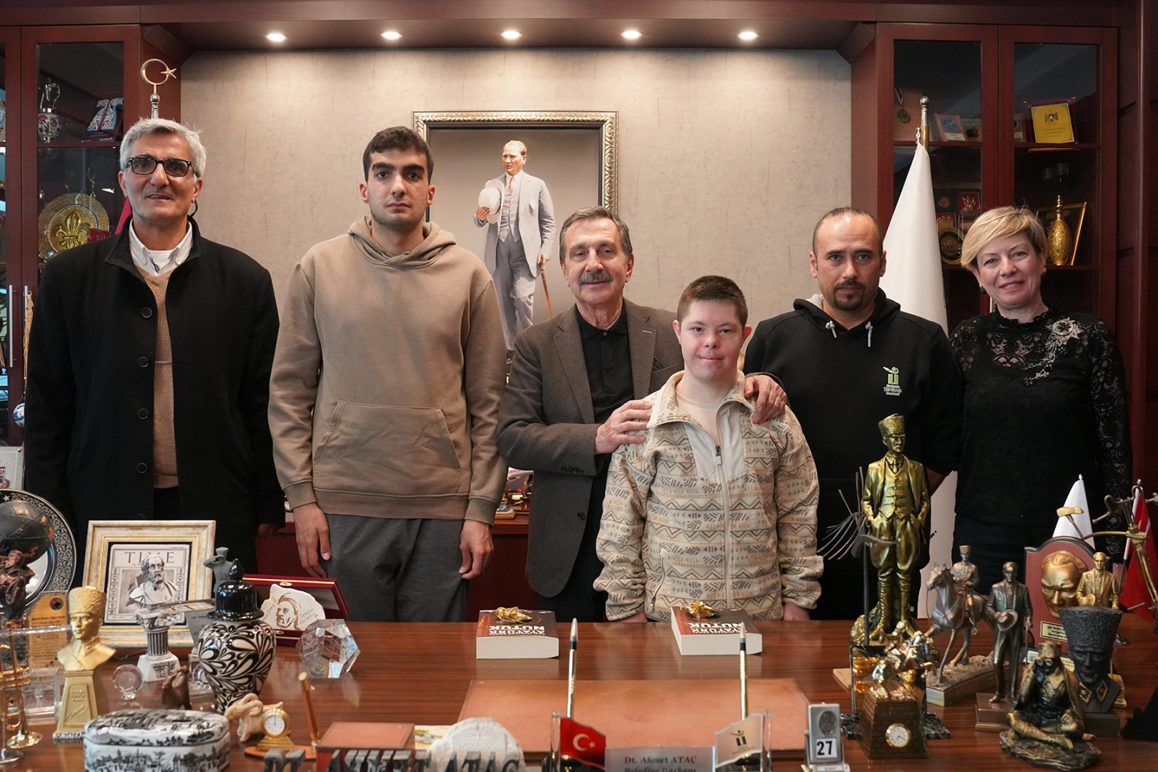 Özel sporcuların başarılarıyla gururlandığını ifade eden Başkan Ataç ise, “Benim adıma çok büyük bir mutluluk. İki özel sporcumuzun yüzmedeki başarıları beni gururlandırıyor. Tabi burada önemli olan ailelerin bu konuda çocuklarına sahip çıkmaları, onlara destek vermeleri ve onların rehabilite edilmesi konusunda mücadele etmeleri önemli. İki gencimizde birbirinden başarılı olarak bizim su sporları merkezinde yüzme çalışmalarına devam ediyorlar. Merkezimizdeki uzman arkadaşlarımızın da büyük emekleri var. İnsanlar çalışma azmiyle her türlü zorluğu yenebiliyor. Bu da topluma önemli bir moral veriyor. Eğer bu kardeşlerimiz bu çalışmaları yapmasalardı toplumun içinde olmayabilirlerdi. Bizim amacımız da özel bireylerimizin toplumun içine karışmaları. Toplumla eşit haklarla hareket etmeleridir. Ben emeği geçen arkadaşlarıma teşekkür ediyorum. Tepebaşı Belediyesi her zaman özel bireylerimizin yanında oldu, olmaya da devam edecek. Gelecekte de farklı konularla uzman arkadaşlarımızla bu kardeşlerimizi daha iyi noktaya getireceğiz” diye konuştu.