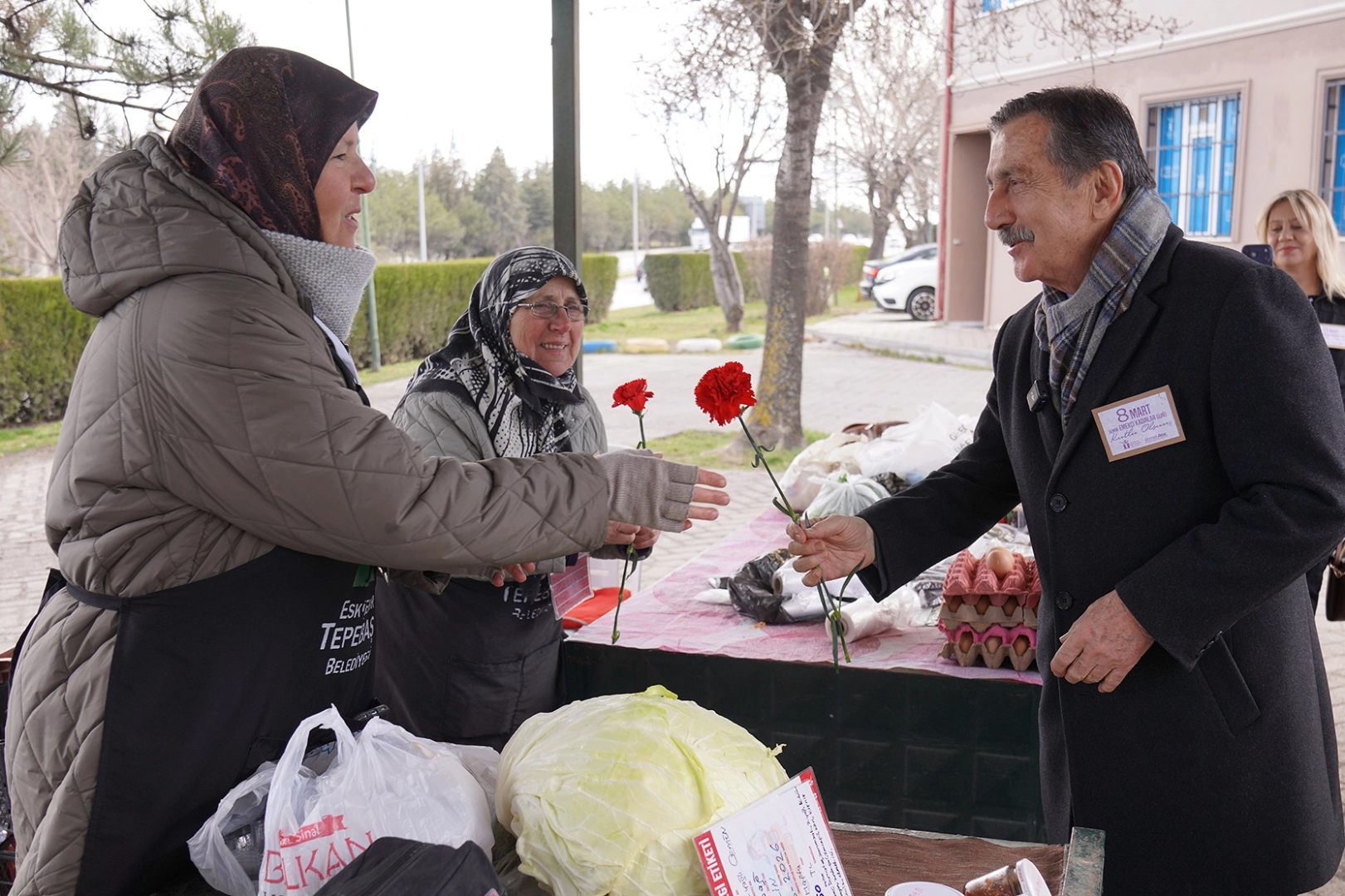Tepebaşı Belediye Başkanı Dt. Ahmet Ataç, Tepebaşı Belediyesi Kadın Üretici Ürün Satış Noktası projesine katılan kırsal mahalle sakini kadınları ziyaret ederek, 8 Mart Dünya Kadınlar Günü’nü kutladı.