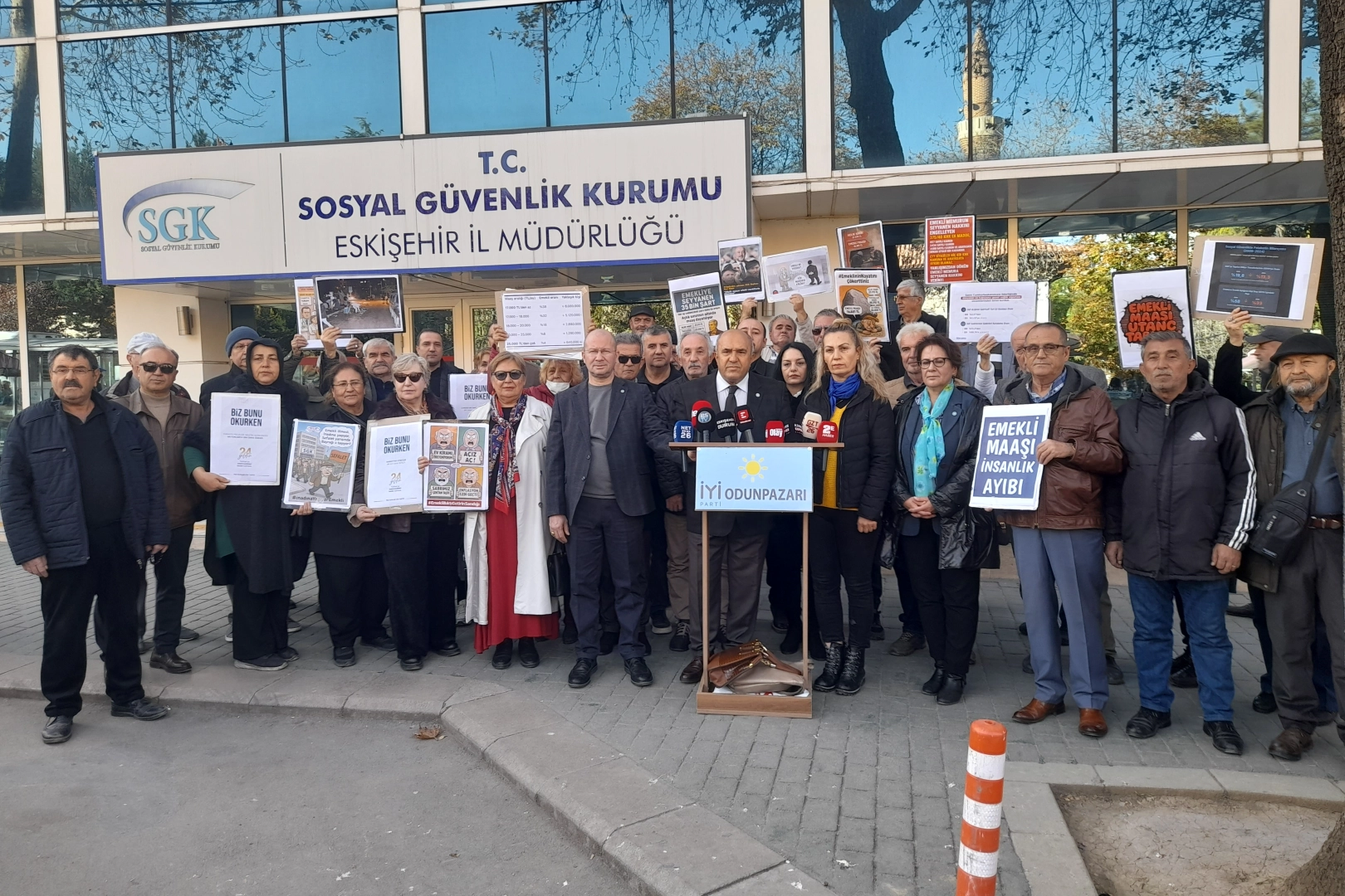 SGK Eskişehir İl Müdürlüğü önünde düzenlenen basın toplantısında konuşan İYİ Parti Odunpazarı İlçe Başkanı Gürol Yer şu ifadeleri kullandı;