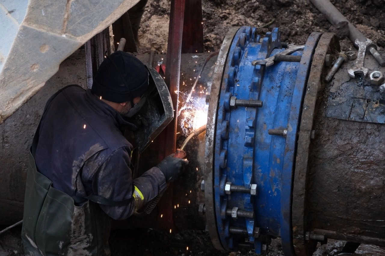 Aynı gün ilgili birimler koordine edilerek kazı çalışmalarına başlanılmıştır. Kazı çalışmaları tamamlandığında arızanın 800’lük hattın üzerinde iki borunun birleşme noktasındaki flanş olarak adlandırılan malzemeden kaynaklandığı görülmüştür. Onarım çalışmasına bağlı olarak öngörülen su kesintisi süresi hesaplanarak kamuoyu ile paylaşılmıştır. Malzemelerin hazır edilmesi ile birlikte 19 Aralık Cuma akşamı saat 22.00 itibariyle arıza onarım çalışmasına başlanmıştır. Müdahale edilecek çelik borudaki suyun boşaltılma çalışmaları tamamlandıktan sonra arızalı kısım kesilerek borudan çıkarılmıştır. Ancak, bu sorunlu parça çıkarıldıktan sonra borunun ilk montaj aşamasında birleştirmeden kaynaklı 6-7 santim eksen kayıklığı olduğu durumuyla karşılaşılmıştır. Ortaya çıkan bu yeni durum da işin tamamlanma sürecinin uzamasına neden olmuştur. Eksen kayıklığını ortadan kaldırılacak ana aparatın hazırlanmasına yönelik yapılan teknik çalışmadan sonra cumartesi saat 14.00 itibariyle kaynak çalışması ve akabinde montaj çalışmasına başlanmıştır. 20 Aralık Cumartesi günü saat 20.30 itibariyle çalışmalar tamamlanmış olup D4 deposuna su basımı gerçekleştirilmiştir.