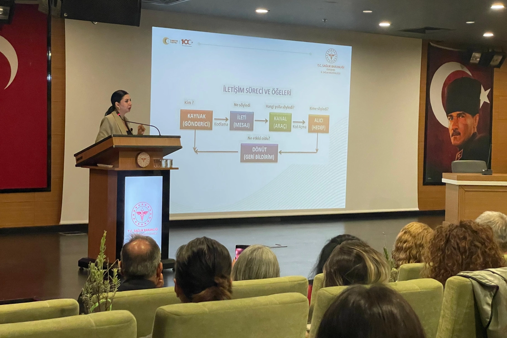 Psikolog Ebru Ayüre ise “İletişim Becerileri ve Stres Yönetimi” başlıklı sunumunda, sağlık çalışanları açısından etkili iletişimin ve stres yönetiminin önemine değindi.