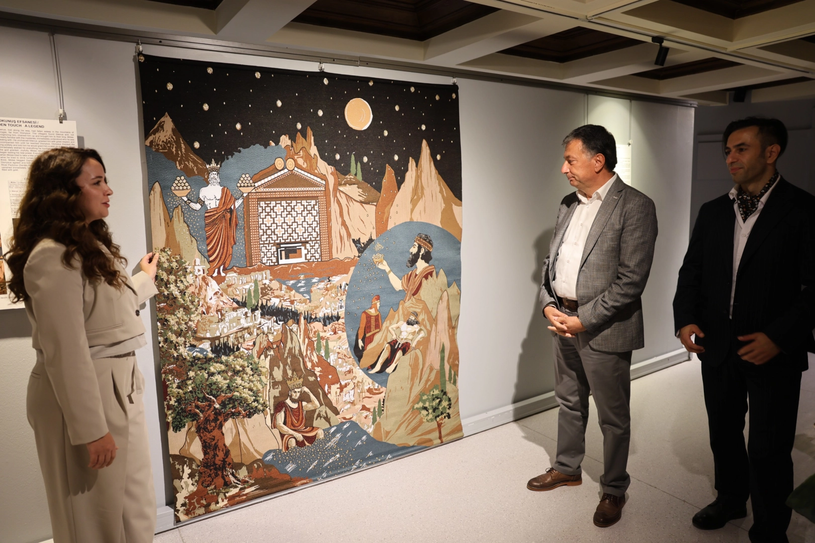 Sergide, “Müzik Yarışması”, “Kral Midas ve Altın Dokunuş”, “Büyük İskender ve Gordion Düğümü”, “Bekos”, “Kibele ve Attis” gibi mitolojik anlatılardan esinlenerek hazırlanan eserler yer aldı. Frig efsanelerinin izlerini taşıyan çalışmalar; müzikten mimariye, gündelik yaşamdan mitolojik göndermelere kadar pek çok unsuru içeren çok katmanlı bir kültürel mirası günümüze aktarıyor.