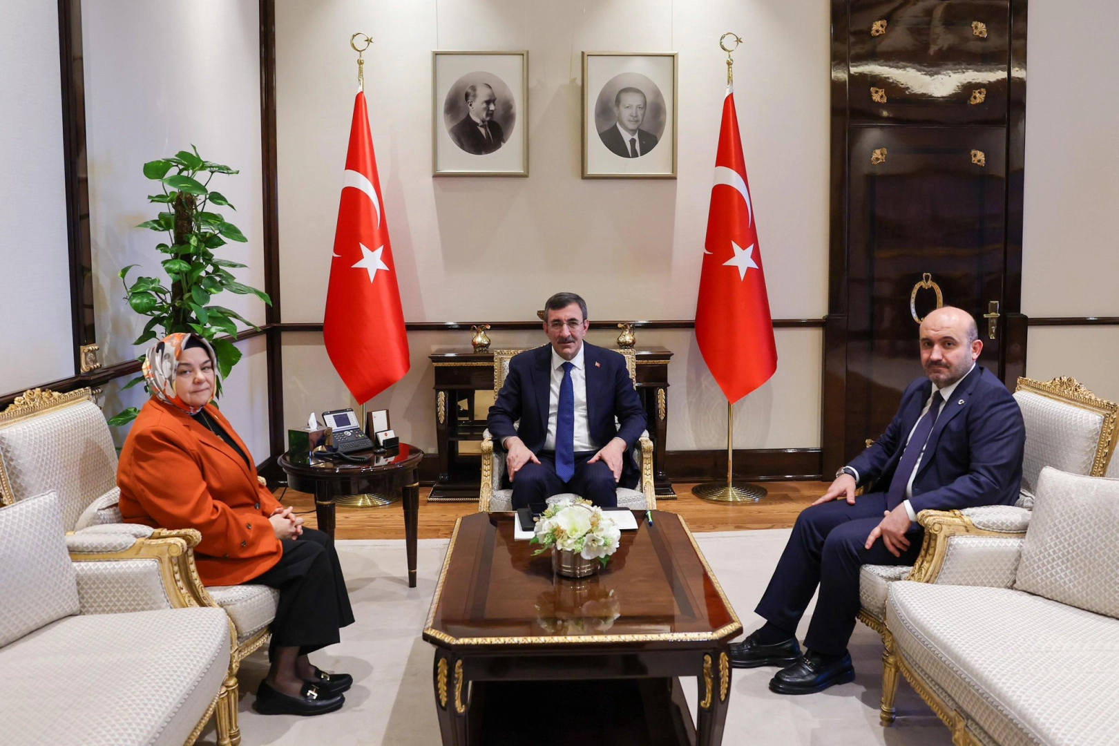 AK Parti Eskişehir Milletvekili ve TBMM Milli Eğitim, Kültür, Gençlik ve Spor Komisyonu Başkanı Prof. Dr Ayşen Gürcan ve AK Parti Eskişehir İl Başkanı Gürhan Albayrak Cumhurbaşkanı Yardımcısı Cevdet Yılmaz'ı ziyaret etti.