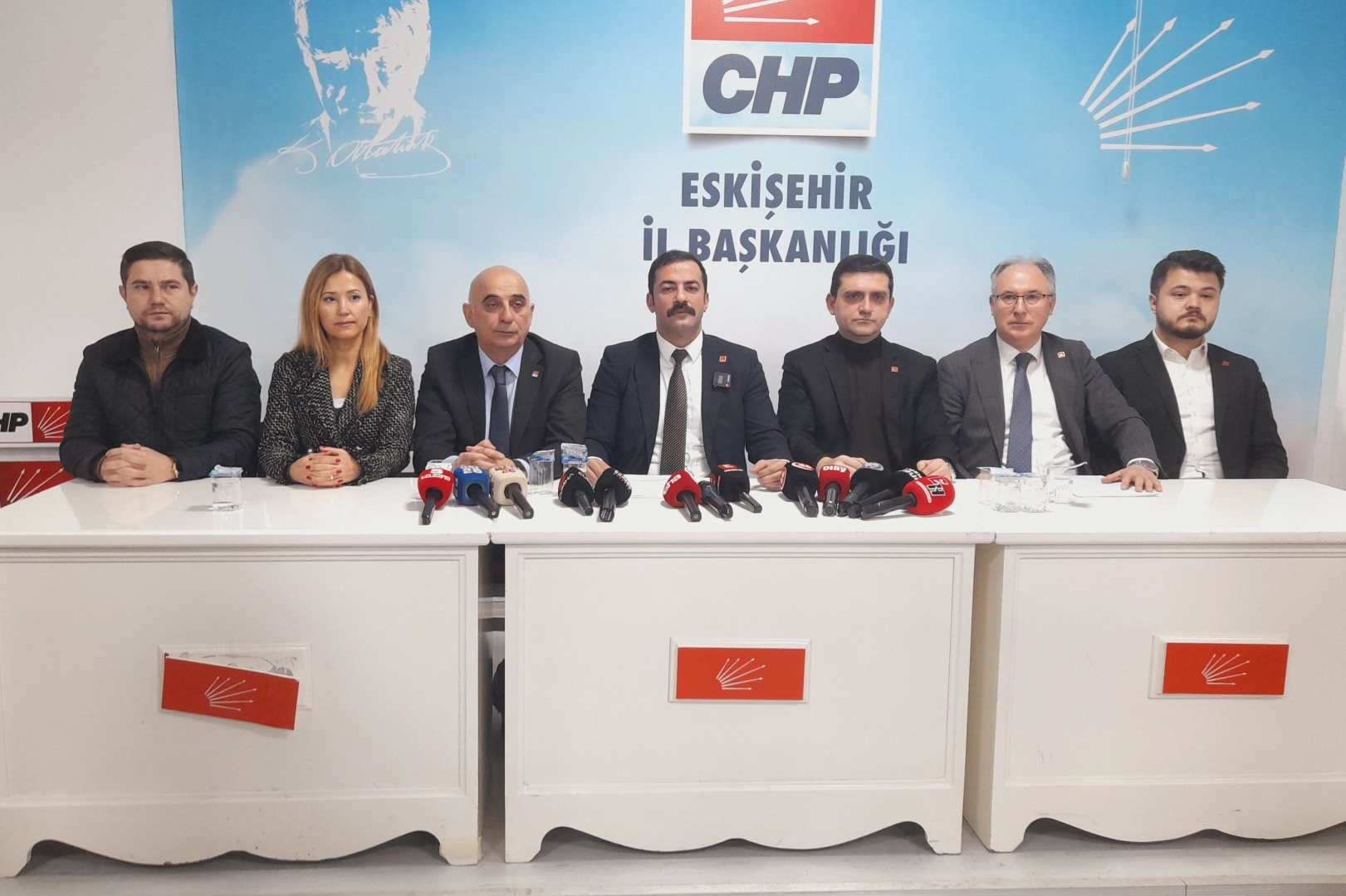 CHP Eskişehir İl Binasında düzenlenen basın toplantısına İl Başkanı Talat Yalaz, Odunpazarı İlçe Başkanı Rahmi Çınar, Tepebaşı İlçe Başkanı Tevfik Yıldırım, İl Disiplin Kurulu Başkanı Muratcan Cırık, İl Kadın Kolları Başkanı Sibel Yeşildal, İl Gençlik Kolları Başkanı Anıl Yüksel, Tepebaşı Belediye Meclis Üyesi Atilay Dalgıç ile İl ve İlçe Yöneticileri katıldı.