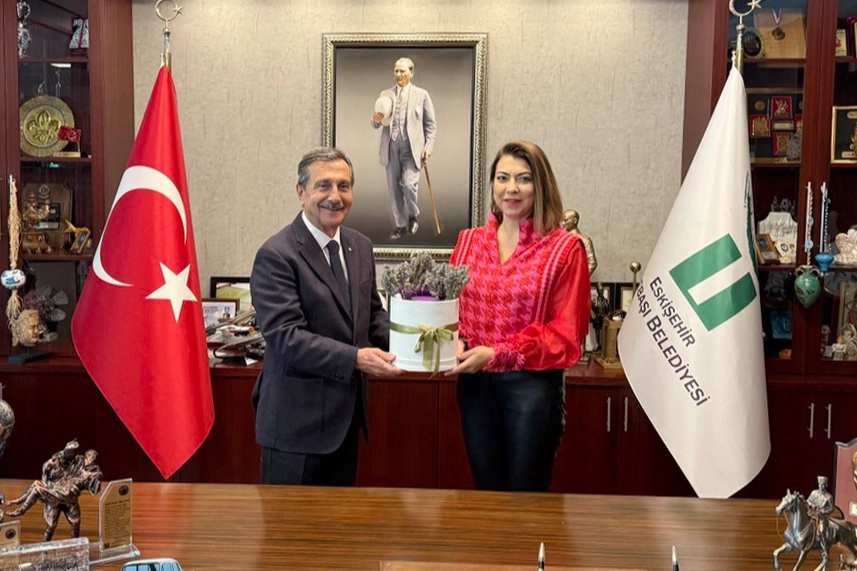 Tepebaşı Belediye Başkanı Dt. Ahmet Ataç, çini sanatçısı Nida Olçar’ı makamında ağırladı.