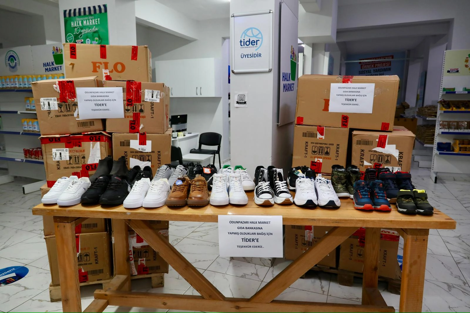 Temel İhtiyaç Derneği (TİDER) ile FLO iş birliğinde, Odunpazarı Halk Market’e 500 çift ayakkabı bağışı yapıldı. Bağışlanan ayakkabılar, Odunpazarı Halk Market aracılığıyla ihtiyaç sahiplerine ulaştırılacak.