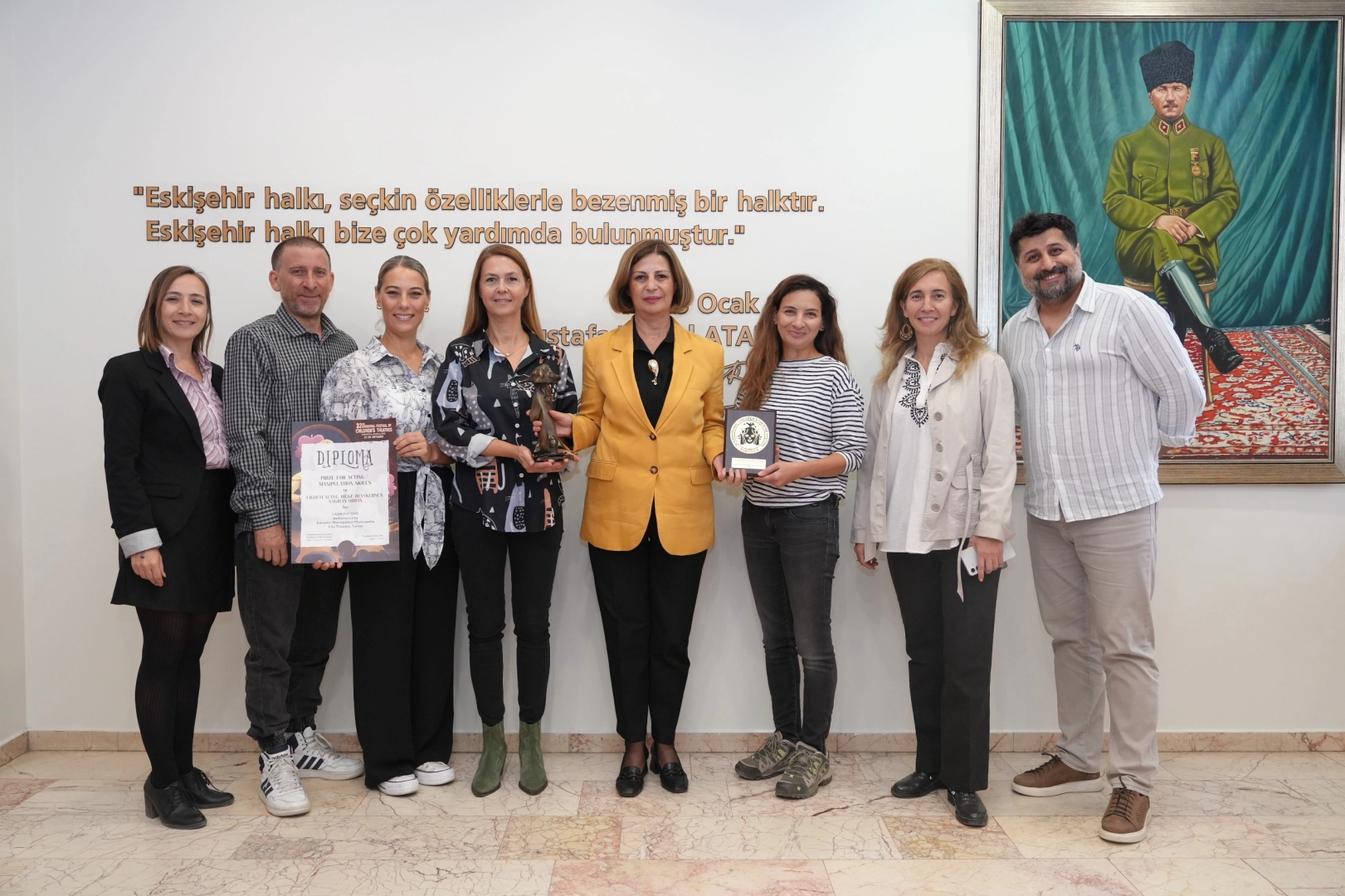 Eskişehir Büyükşehir Belediyesi Şehir Tiyatrolarının “Ben de Uçabilirim” adlı kukla oyunu, Sırbistan’ın Subotica kentinde düzenlenen 32. Uluslararası Subotica Çocuk Tiyatroları Festivali’nde “En İyi Ekip Oyunculuğu” ödülüne layık görüldü. Ekip, ödül sevincini Büyükşehir Belediye Başkanı Ayşe Ünlüce ile paylaştı.