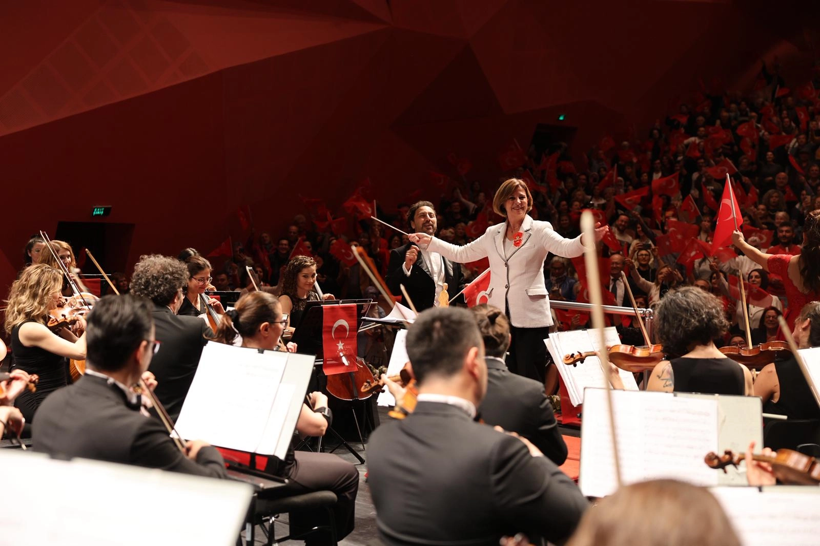 Eskişehir Büyükşehir Belediyesi Senfoni Orkestrası bu hafta orkestra şefi Murat Cem Orhan yönetiminde ve Anatolian Sopranos grubu Çiğdem Önol, Funda Saltaş Ateşoğlu ve Esin Talınlı solistliğinde Cumhuriyet Bayramı Özel Konseri’yle cumhuriyetimizin 102. yılını coşkuyla kutladı. Konsere katılan Büyükşehir Belediye Başkanı Ayşe Ünlüce, eline batonu alıp orkestranın başına geçerek coşkuyu doruğa çıkardı.