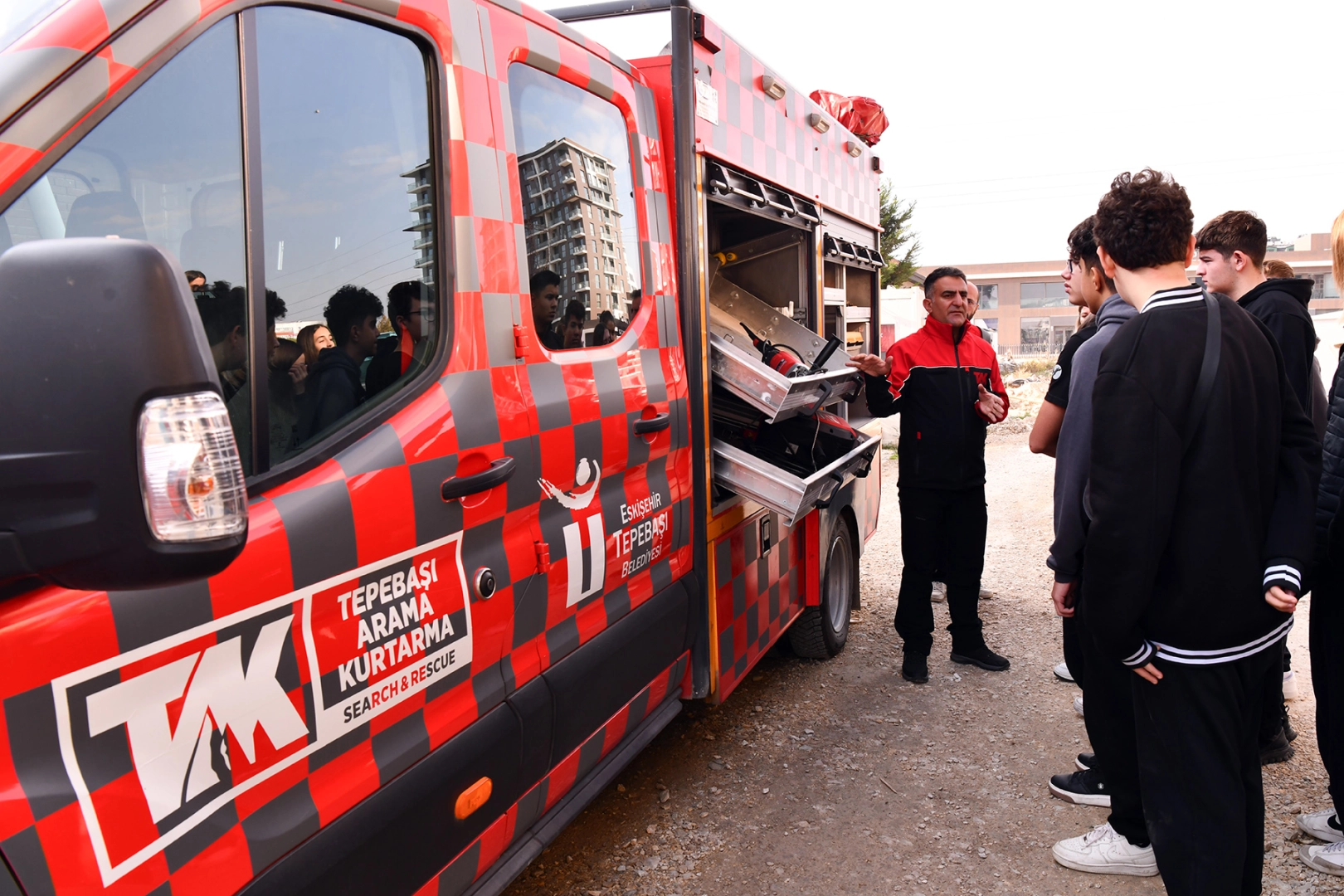 Tepebaşı Arama Kurtarma (TAK) ekibi, Afet Farkındalık Haftası nedeniyle Birey Koleji öğrencilerine eğitim verdi.