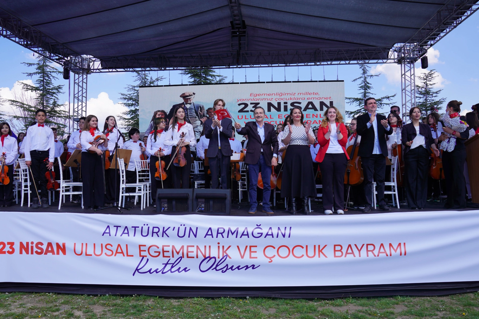 Vecihi Hürkuş Havacılık ve Teknoloji Parkı’nda gerçekleşen 23 Nisan Ulusal Egemenlik ve Çocuk Bayramı kutlamalarına binlerce kişi katıldı. Tepebaşı Belediye Başkanı Dt. Ahmet Ataç’ın da yer aldığı kutlamalar, İki Elin Sesi Var Çocuk ve Gençlik Senfoni Orkestrası’nın konseri ile başladı. Orkestra şefliğini Serhan Gencer’in üstlendiği konserde yer alan 61 çocuk, Türk Marşı, Çiçeklerin Valsi, Chamambo ve Caravan eserlerini icra etti. Ardından ise İki Elin Sesi Var Çocuk Korosu’ndan 45 çocuk sahneye çıkarak orkestra ile birlikte Atatürk Çocukları, Atam Sen Rahat Uyu, 23 Nisan Kutlu Olsun, Günaydın Çocuklar, Bugün Bayram, Hayat Bayram Olsa ve Ata’ya Mektup isimli eserlerini seslendirdi. Orkestra ve koro katılımcılardan tam not aldı.