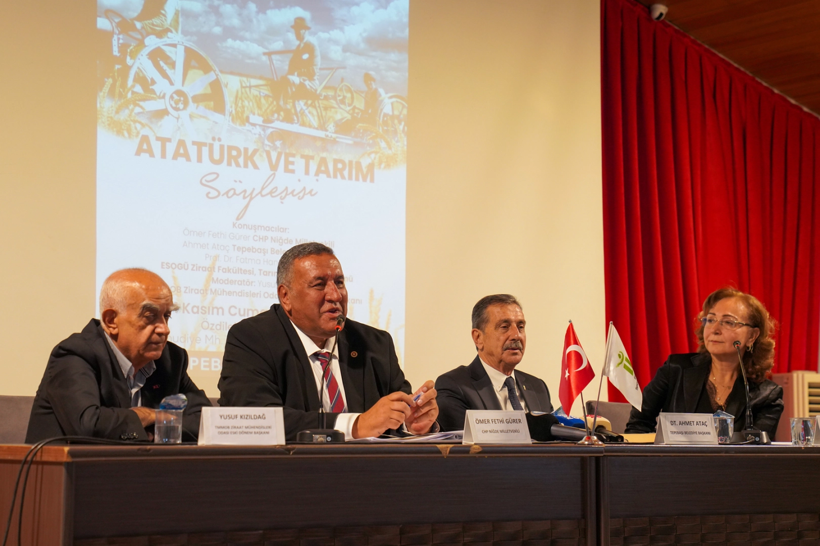 CHP Niğde Milletvekili Ömer Fethi Gürer ise mevcut hükümetin tarıma vermesi gereken desteğin yetersiz olduğunu, tarım politikalarının geleceğe yönelik düzenlenmesi gerektiğini vurguladı. Uygulanan yanlış tarım politikaları nedeniyle birçok üründe kayıp yaşandığına dikkat çeken Milletvekili Gürer, “Bu yıl kuraklık oldu, don oldu, sel oldu. Ama hükümet sürekli kaderci yaklaştı. Tarsim’e ve Çiftçi kayıt Sistemine dahil olmayan çiftçilere destek verilmedi. Durum böyle olunca her sene ürün kaybı oluyor. Destek alan üreticiler de desteği zamanında alamadığı için o yıl harcadıkları mazot, gübre gibi giderleri verilen destekten karşılayamıyor. Enflasyon karşısında eriyor. Kooperatif yılındayız. Kooperatif tarımın olmazsa olmazı. Yeni bir kooperatifçilik anlayışı geliştirilmelidir. İthalatçı anlayış yerine, yerli üretimi öncelikli hale getirmek için planlı tarım politikalarına geçiş yapılmalıdır.” dedi. Atatürk’ün tarıma bakışını bir sunumla anlatan Milletvekili Gürer: “Mustafa Kemal Atatürk’ün o yüz yıllar önce söyledikleri hala bugün tarımın kurtuluş reçetesi. Eğer Atatürk’ün bu söyledikleri uygulanmış olsaydı, bugün tarımı konuşuyor olmazdık.” ifadelerini kullandı.