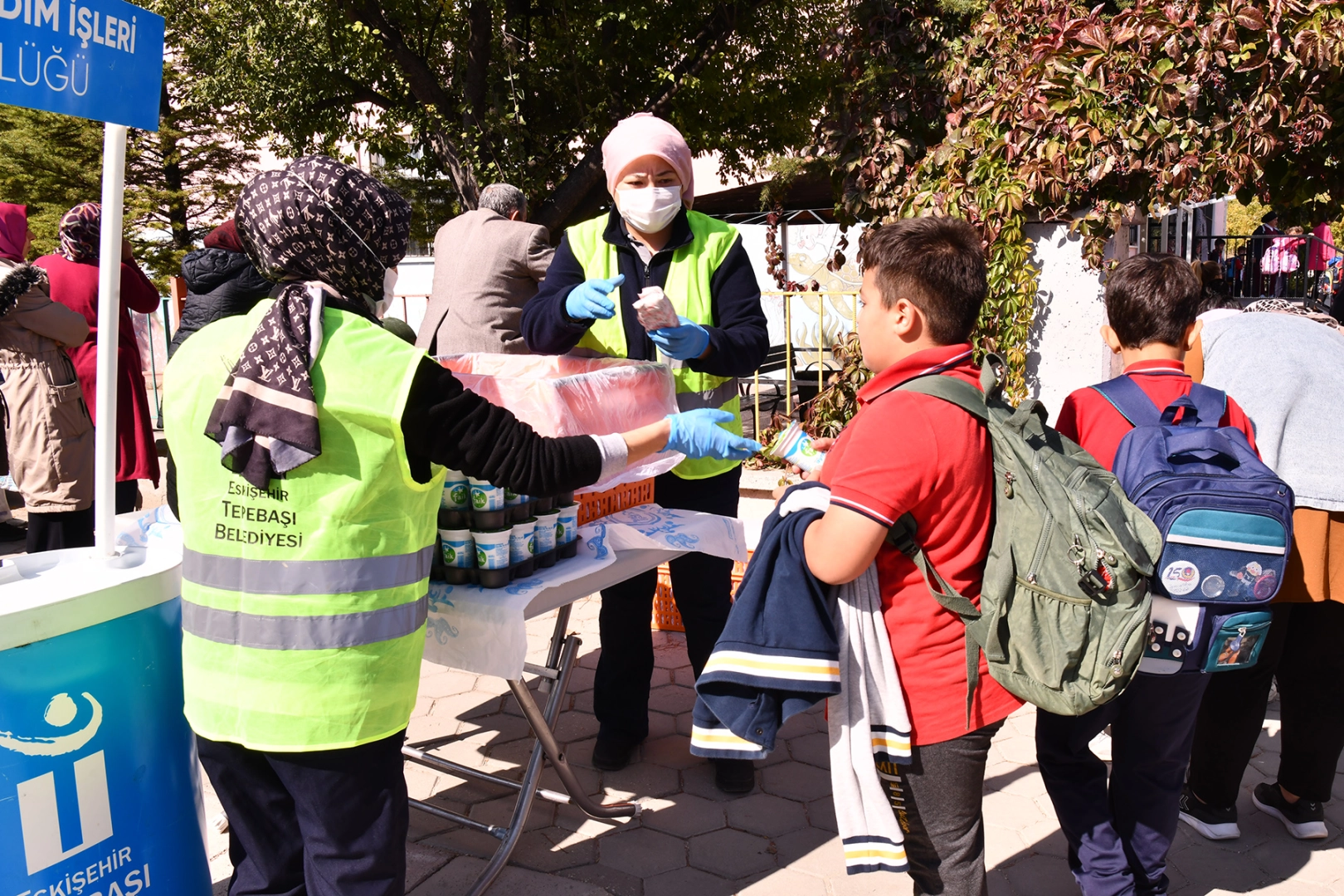 Belediye yetkilileri, beslenme desteğinin Tepebaşı bölgesinde her gün farklı bir okulda öğrencilere ulaştırılarak tüm bölgeye hizmet verileceğini kaydetti.