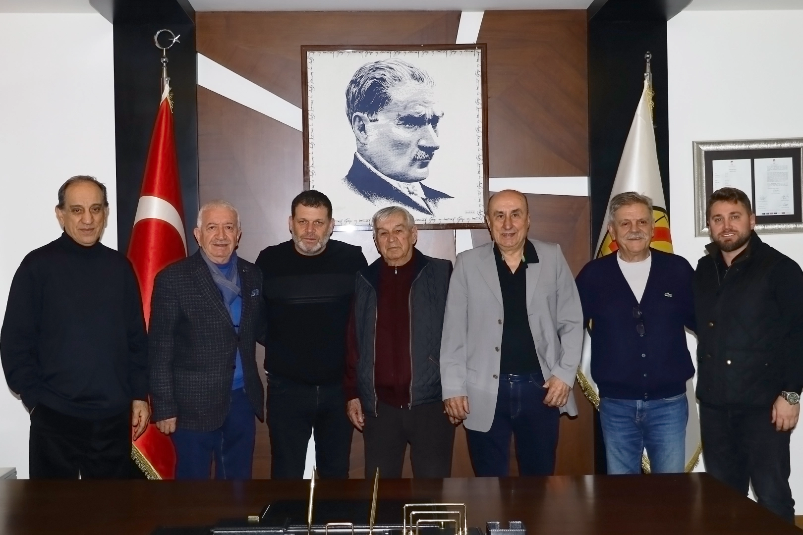 Eskişehirspor’un efsane futbolcuları İlhan Çolak, Hüdai Doğu, Feza Baycan, Serdal Eroy ve Necmi Aktuna, Eskişehirspor Teknik Direktörü Hakan Şapcı’yı ziyaret etti.