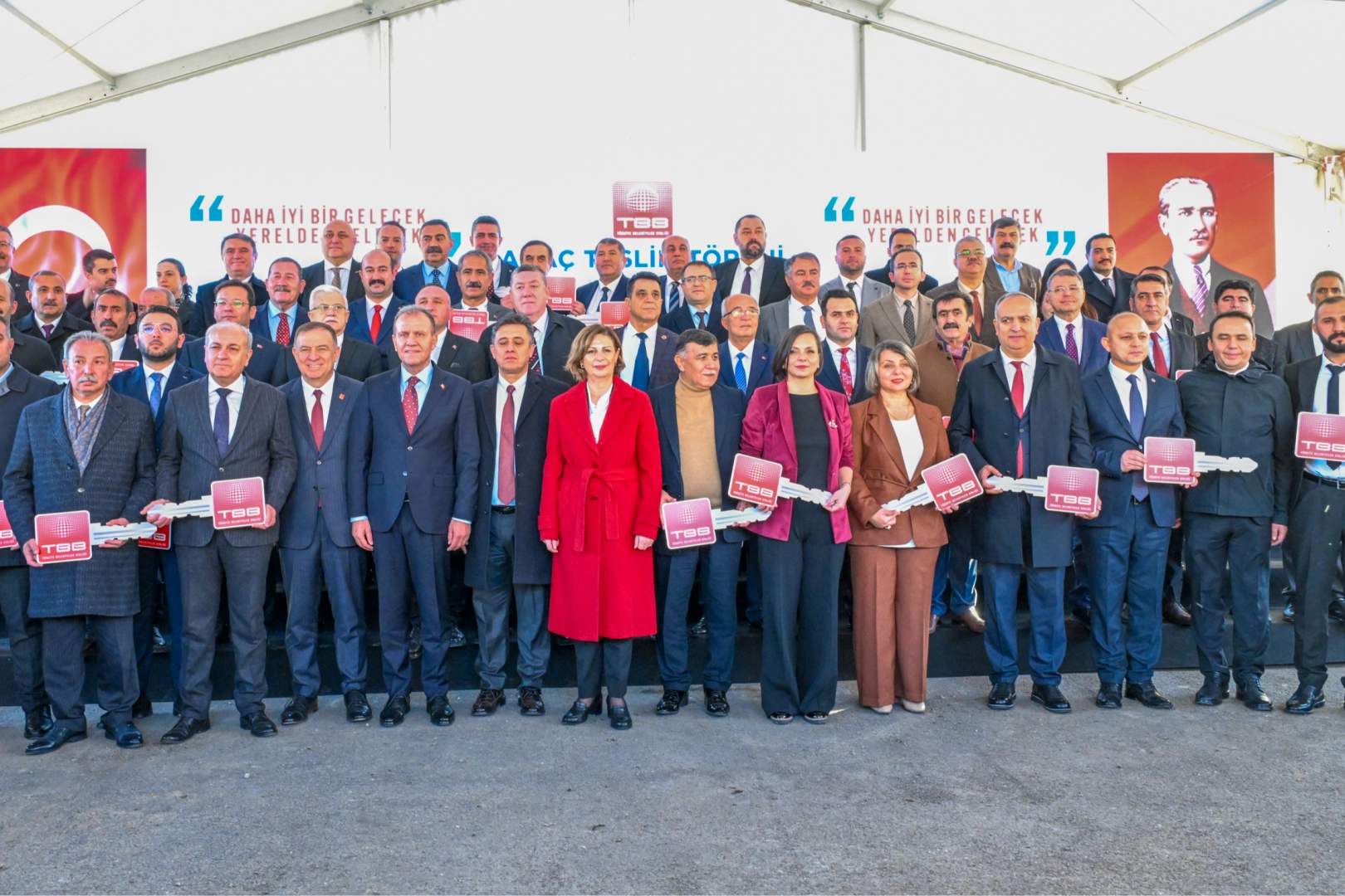 TBB Encümen Toplantısı’nın ardından gerçekleştirilen tören ile belediyelere toplam 59 yeni araç teslim edildi. Bu araçlar arasında; 15 ekskavatör, 14 çöp kamyonu, 11 kazıcı yükleyici, 7 damperli kamyon, 6 yol süpürme aracı, 2 cenaze aracı, 1 greyder, 1 itfaiye aracı, 1 otobüs ve 1 arazöz yer aldı. Anahtarları teslim edilen 59 yeni araçla birlikte belediyelere TBB tarafından Haziran 2024 tarihinden bugüne kadar toplam 523 araç hibe desteği sağlanmış oldu. Teslimi yapılan araçlar sayesinde, belediyelerin hizmet kapasitesini artırarak vatandaşlara daha kaliteli hizmet sunmalarına katkı sağlamak hedefleniyor.
